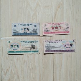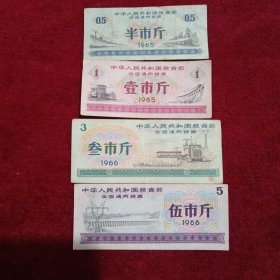 1966年 全国通用粮票(半市斤、壹市斤、叁市斤、伍市斤)