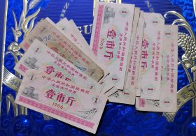 全国通用粮票1966年40张(一市斤、叁市斤、伍市斤)1965年13张(一市斤、叁市斤)共53张合售