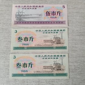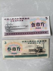 中华人民共和国粮食部全国通用粮票1966年叁市斤 伍市斤