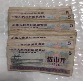 1966年全国通用粮票伍市斤8张。