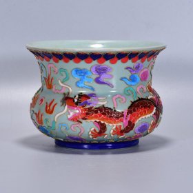 宋汝瓷掐丝珐琅彩龙纹炉