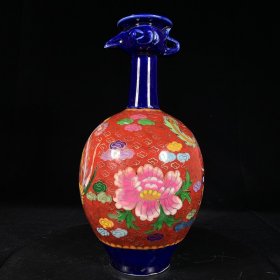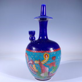 宋定窑宝石蓝掐丝珐琅彩凤凤首瓶高27厘米直径13厘米