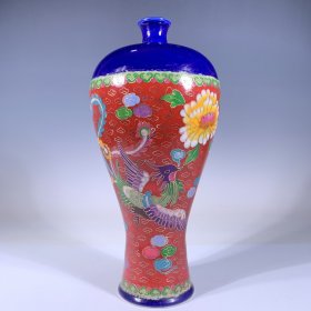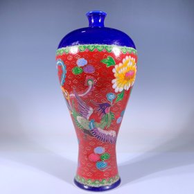 宋钧窑掐丝珐琅花鸟纹梅瓶,高31.8cm直径17cm,
