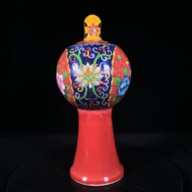 宋定窑掐丝珐琅彩单环壶,高27厘米,直径12厘米,
