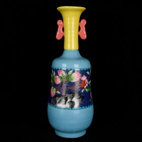 宋汝瓷掐丝珐琅彩寿桃纹双耳瓶 高38cm 直径15cm