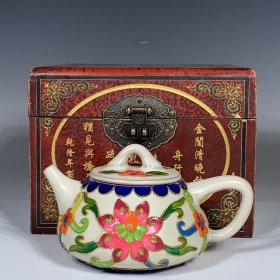 宋汝窑漆器锦盒装掐丝珐琅壶高8厘米直径13厘米