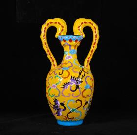 宋定窑易定款珐琅彩掐丝仙鹤纹双龙瓶,高29×16厘米