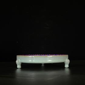 宋汝窑掐丝珐琅彩镶嵌宝石御题铭文折腰洗 4x18.5厘米