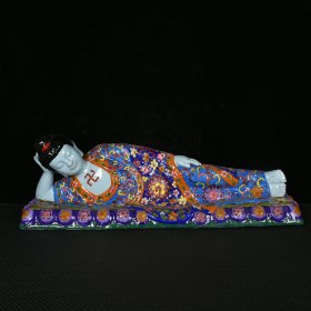 宋汝瓷宣和二年宋徽宗御制款掐丝珐琅彩福寿花卉纹睡观音
