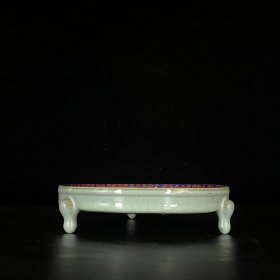 宋汝窑掐丝珐琅彩刻字描金题诗纹三足洗4.3×19.5厘米