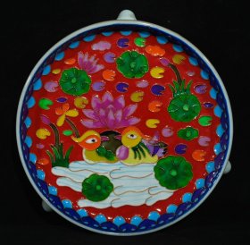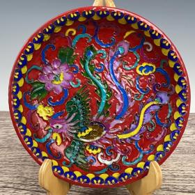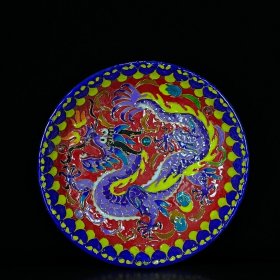 宋汝窑珐琅彩掐丝龙凤纹刻字描金赏盘,高6.8×41厘米