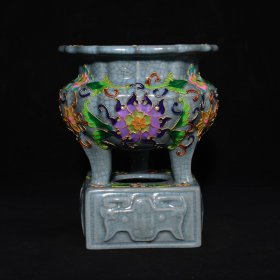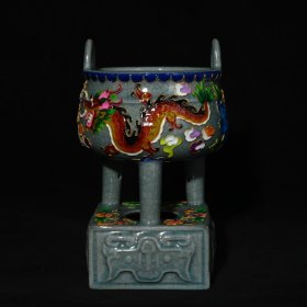 宋汝窑宋徽宗御用款掐丝龙凤纹炉,高21×13厘米700