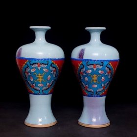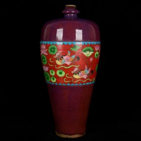 宋钧窑掐丝珐琅彩绘五福捧寿纹梅瓶 高32厘米宽18厘米