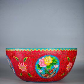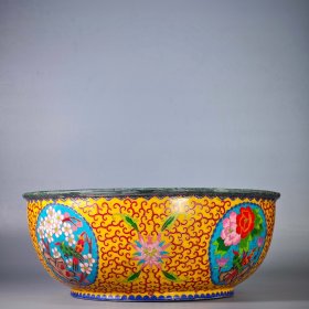 宋汝窑掐丝珐琅绘花鸟纹聚宝盆 高19.5厘米口径44.5厘米