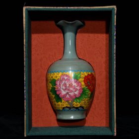 宋汝瓷掐丝珐琅彩寿桃纹双耳瓶 高38厘米 直径15厘米tt