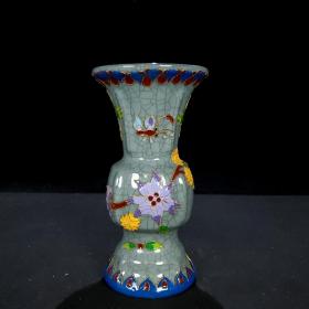 宋官窑明代掐丝填彩“蝶恋花”纹花觚 尺寸高23.6CM口径11.7CM