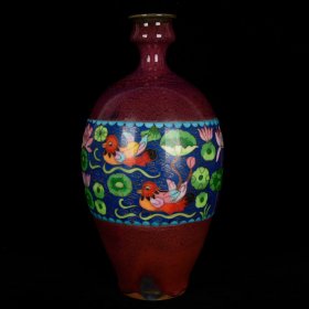 宋钧瓷掐丝珐琅彩莲池鸳鸯纹梅瓶 古玩古董古瓷器老货收藏,