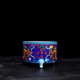 宋汝窑掐丝珐琅绘云龙纹三足奁 高12.2厘米口径8.5厘米
