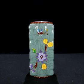 宋官窑明代掐丝填彩“蝶恋花”纹琮瓶 尺寸高21.6CM直径9.2CM