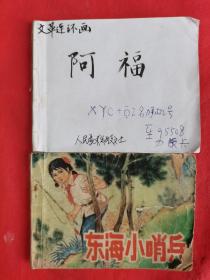 连环画:《阿福》+《东海小哨兵》。【人民美術出版社,改编 沈国鋆、黄宝柱 等,绘画 石扬、高宝生,1972年,一版一印】。根据越南同名电影 根据浙江省温州地区瓯剧团同名瓯剧 改编。共计2册/合售。