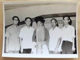荀慧生长子著名京剧表演艺术家荀令香着戏装与京剧表演艺术家张学津,京剧理论家王家熙等1980年合影原版照片,优质亮光相纸,由著名音乐指挥家赵家圭拍摄,背后有印章,保存全新难得,京剧理论家王家熙旧藏