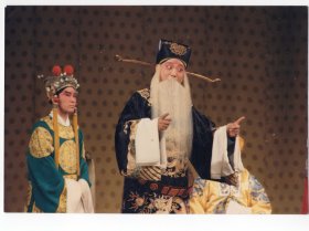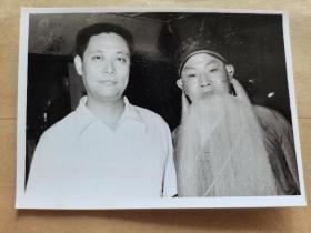 荀慧生长子著名京剧表演艺术家荀令香着戏装与京剧表演艺术家张学津1980年合影原版照片,优质亮光相纸,由著名音乐指挥家赵家圭拍摄,背后有印章,保存全新,京剧理论家王家熙旧藏