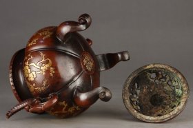 明 铜胎鎏金缠枝莲花卉纹瓜棱熏炉