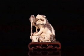 ,民国大师工,雕“狮子戏球”摆件,名家“松山”款,满工雕刻,线条细致,狮子娇憨可爱,一爪托绣球,神态灵动,毛发雕刻精细,张牙舞爪,包浆油润,规格:带底座高12.6cm宽12.4cm重505g