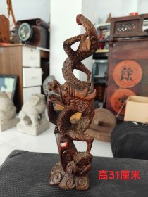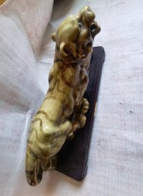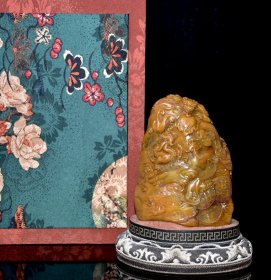 旧藏老货 寿山石田黄石摆件 原石原色纯手工雕刻 工艺精湛 形象逼真 包浆老气 保存完整 篆刻家【滄門】作 尺寸:8*4*15厘米(含底座高)净高11厘米 重量:550克