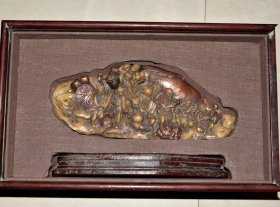 旧藏珍品 寿山石田黄石摆件 石质通透坚硬 雕工精细 萝卜丝纹清晰可见 保存完整 包浆老气 篆刻家【林皋】丁卯年刊 尺寸:10*3*15厘米(含底座高)净高12厘米 重量:587克
