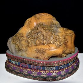 旧藏老货 寿山石田黄摆件 石质通透坚硬 原石原色纯手工雕刻 满萝卜丝纹 包浆醇厚 皮壳老辣 篆刻家【清卿】丁丑年 尺寸:19*14*16厘米(含底座高)净高11厘米 重量:2309克