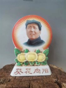 下乡刚刚陶得瓷板带坐老主席瓷像,罕见年青时期完整瓷件,完整一对,极为少见的画面,刻字极背语录主席瓷像