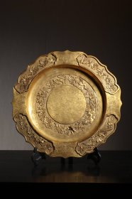 铜黄浮雕凤龙呈祥一盘个,精制铜作,雕刻精美,工雕精细,完存保好,浆包满丰,相品一流