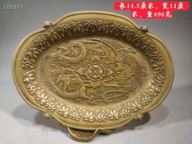 铜黄浮雕凤龙呈祥一盘个,精制铜作,雕刻精美,工雕精细,完存保好,浆包满丰,相品一流
