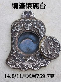 白铜鎏银砚台,造型别致,高浮雕堑刻,工精物美,品相如图!