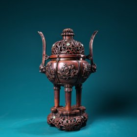 珍藏纯铜全铜高浮雕錾刻熏香炉 工艺精湛 器型款式精 重1400克 高23厘米 高15厘米 660元 02425