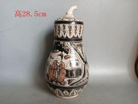 乡下收的宋代人物磁州窑瓷瓶/