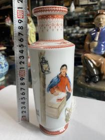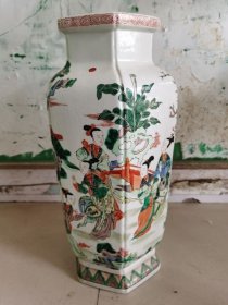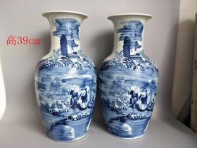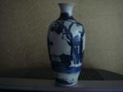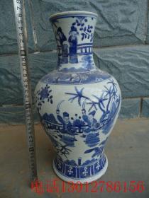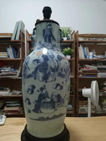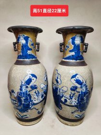 旧藏青花人物瓷瓶,高51厘米,直径22厘米 葵口瓶身开片,以蓝白两色为主,绘有八仙人物图案,颈部和腹部的人物形象生动,瓶颈处配有双耳,器型端正………