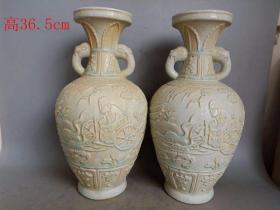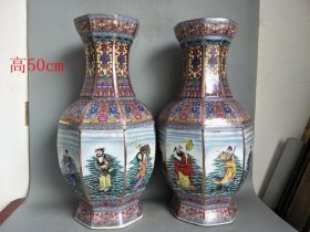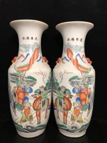 旧藏 【群仙会 象耳粉彩瓷瓶】,高65.5cm,口径18.2cm,底径21.2cm,瓶身手绘群仙聚会,色彩鲜艳,人物生动,工艺精细,底部有款识,无磕碰无修补,保存很好,适合收藏或陈设!