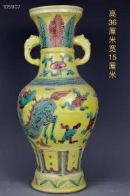 珐华彩麒麟图案双耳瓶