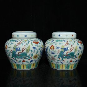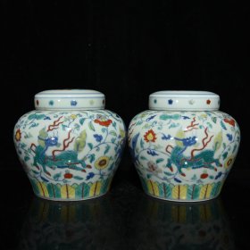 成化斗彩麒麟图案纹天字罐尺寸14*15.5厘米