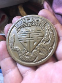 1993年麒麟送子铜章一个,背后是龙和囍字图案40包邮包老保真