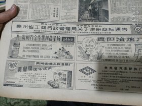 80年代贵州酒历史文化宣传广告资料:贵州省工商行政管理局关于注册商标通告——贵州省金华果树蔬菜场金华白酒,贵阳冶炼厂,镇远县青龙牌陈年道菜厂,贵州省汽车配件厂。贵州省永安电机公司成立,中华全国老年医学会贵州分会成立,贵州省范民获第六届亚洲太平洋航模竞赛冠军。