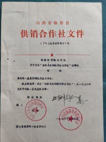 (1976年)山西省临汾县供销合作社:《关于启用“临汾县果树场供销合作社”公章的通知》
