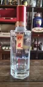 泸州吴家酒业“妙藏.臻品”吴晓萍作品,38°500ml浓香型,精白料玻璃烤花工艺酒瓶。