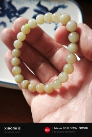 包邮【新疆青玉 老料 圆珠手串】珠径1.65重89g近二两。到手十来年,重新加了串绳。这串色泽沉稳,打灯色泽漂亮。性价比高。珠型用料扎实,色泽统一。上手沉稳。包浆很好。玉质油润细腻。珠子大小适宜。