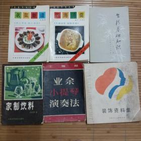 名菜新谱。四海汤羹。书法基础知识。家制饮料。业余小提琴演奏法。装饰资料集。每本3元