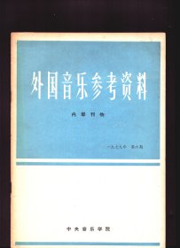 外国音乐参考资料 1979年6期【目录】:世界音乐●第三世界音乐的巨大影响●印度音乐和西方音乐的融合●二十世纪的作曲技术九●论旋律艺术 九●两架钢琴、乐队协奏曲●关于钢琴演奏法的变迁●音乐史中的小提琴●演奏-创作,创作-演奏●朱赛贝·迪·斯台芳诺●高音及其唱法●指挥家的境界 三●唱片与录音带的保护●刘诗昆在日本演奏的反应●