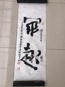 书法140*70厘米,王全博(1940年9月-),山东省寿光市人,曾任某军区空军副司令员,少将军衔,特级飞行员,参加过两次边境轮战,现任山东舜源书画艺术院院长,国家一级书法师