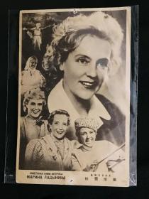 ●苏联电影明星:《扎施企品娜》【五十年代明信片18X12公分】!